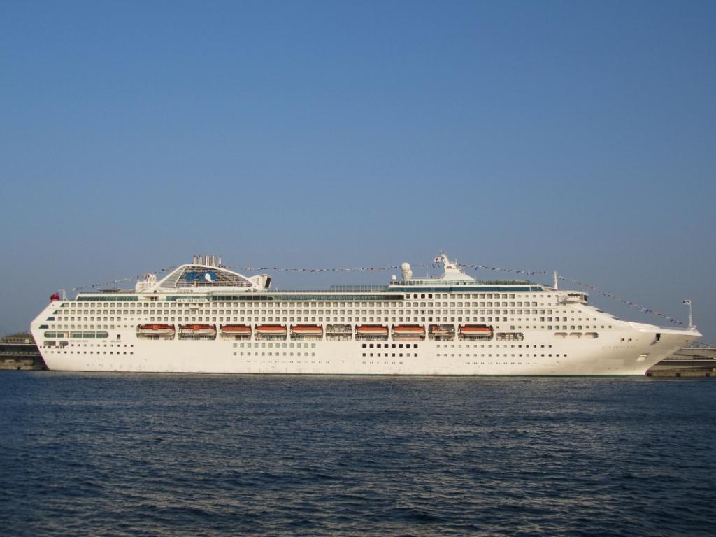 プリンセスクルージズ (Princess Cruises Inc.) 運航。 Built: 1995, IMO: 9000259, MMSI: 310438000 Gross tonnage: 77,499t, Length: 261.0m, Beams: 32.0m |