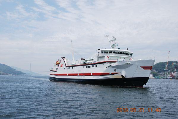 九州商船株式会社 (Kyusyu Shosen Co.,Ltd.) 運航。 Built: 2012, IMO: 9646443, MMSI: 431003967 Gross tonnage: 1,599t, Length: 86.5m, Beams: 14.5m |