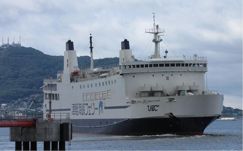 津軽海峡フェリー株式会社 (Tsugaru Kaikyo Ferry Co. Ltd.) 運航。 Built: 1990, IMO: 8921755, MMSI: n/a Gross tonnage: 6,706t, Length: 134.6m, Beams: 21.0m |