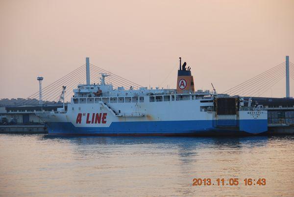 マルエーフェリー株式会社 (A-Line Ferry Co., Ltd.) 運航。 Built: 2002, IMO: 9291523, MMSI: 431602153 Gross tonnage: 6,266t, Length: 146.0m, Beams: 22.0m |