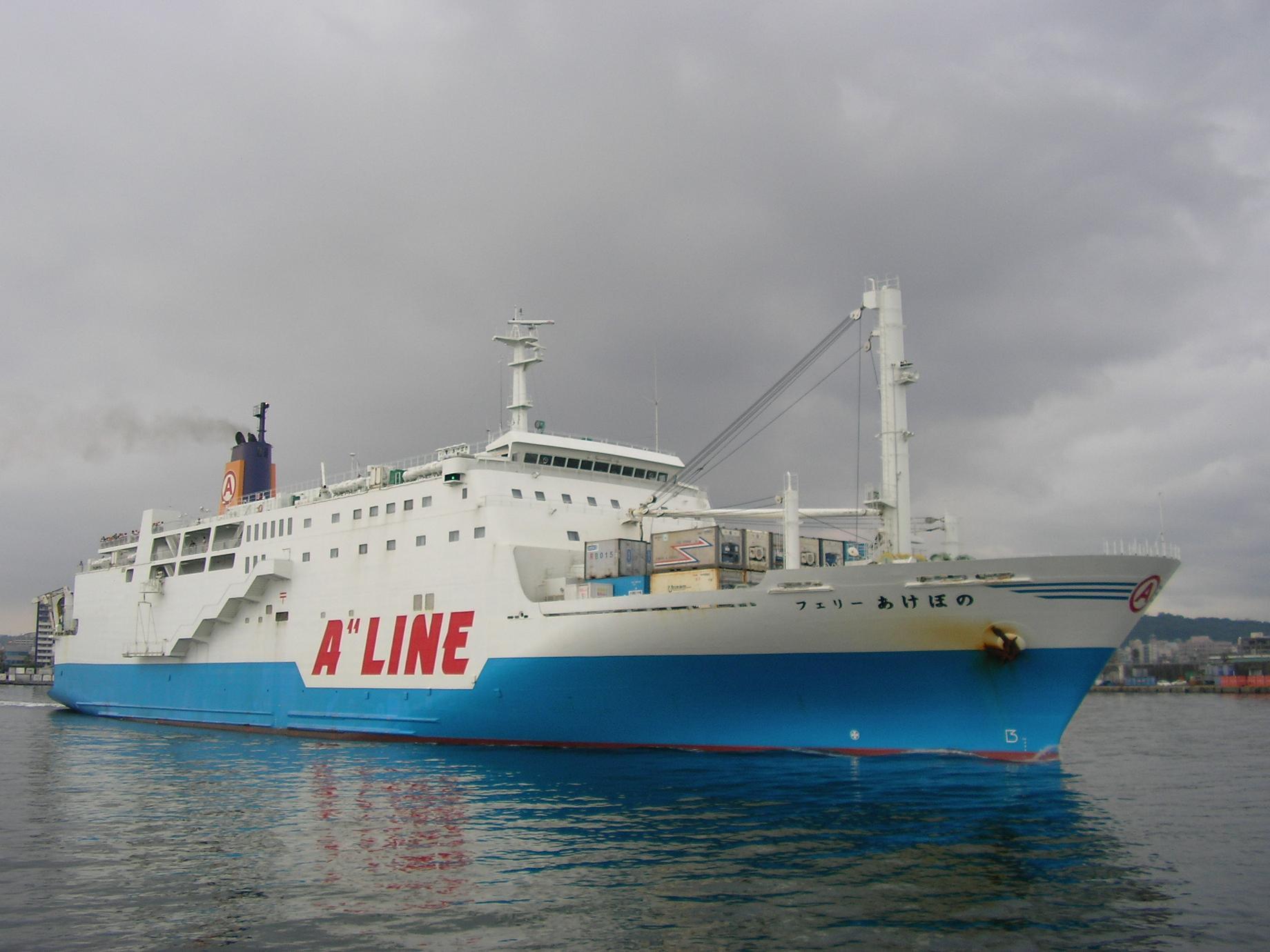 マルエーフェリー株式会社 (A-Line Ferry Co., Ltd.) 運航。 Built: 2008, IMO: 9423310, MMSI: n/a Gross tonnage: 8,083t, Length: 145.0m, Beams: 24.0m |