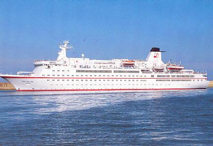 リーデリーピーターデルマン (Rederie Peter Deilmann) 運航。 Built: 1979, IMO: 7904889, MMSI: n/a Gross tonnage: 9,570t, Length: 139.6m, Beams: 18.0m |