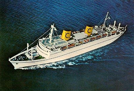 コスタクルージズ (Costa Crociere S.p.A.) 運航。 Built: 1965, IMO: 5197664, MMSI: n/a Gross tonnage: 21,164t, Length: 182.9m, Beams: 23.5m |