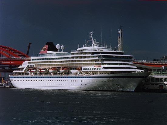 キュナードライン (Cunard Line) 運航。 Built: 1988, IMO: 8700280, MMSI: n/a Gross tonnage: 37,842t, Length: 205.5m, Beams: 28.0m |
