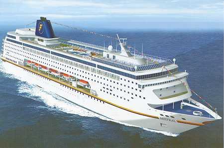 フェスティバルクルージズ (Festival Cruises) 運航。 Built: 1999, IMO: 9172777, MMSI: n/a Gross tonnage: 47,900t, Length: 216.0m, Beams: 29.0m |