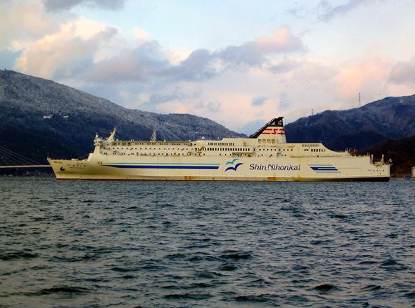 新日本海フェリー株式会社 (Shin Nihonkai Ferry Co., Ltd) 運航。 Built: 1988, IMO: 8712635, MMSI: n/a Gross tonnage: 19,507t, Length: 193.0m, Beams: 29.0m |