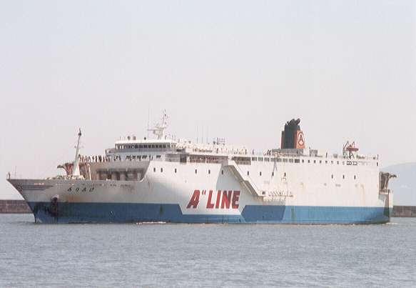 マルエーフェリー株式会社 (A-Line Ferry Co., Ltd.) 運航。 Built: 1995, IMO: 9118783, MMSI: n/a Gross tonnage: 6,592t, Length: 167.0m, Beams: 23.0m |