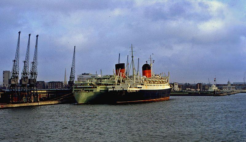 キュナードライン (Cunard Line) 運航。 Built: 1956, IMO: 5063629, MMSI: n/a Gross tonnage: 21,946t, Length: 185.4m, Beams: 24.4m |