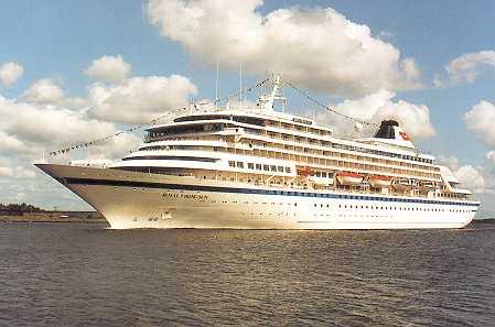 キュナードライン (Cunard Line) 運航。 Built: 1988, IMO: 8700280, MMSI: n/a Gross tonnage: 37,842t, Length: 205.5m, Beams: 28.0m |