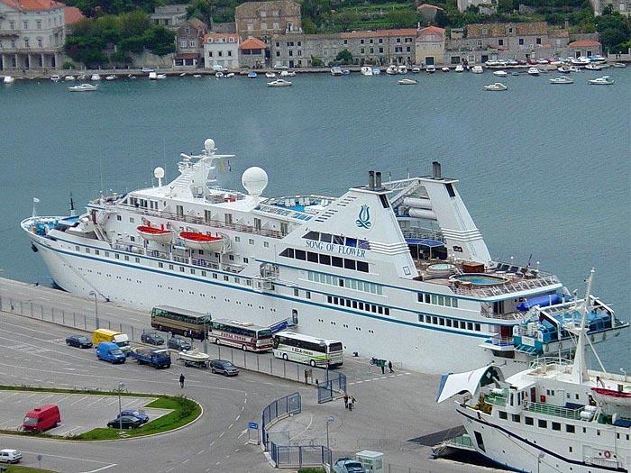 ラディソンセブンシーズクルージズ (Radisson Seven Seas Cruises) 運航。 Built: 1974, IMO: 7325629, MMSI: n/a Gross tonnage: 8,282t, Length: 130.0m, Beams: 16.0m |
