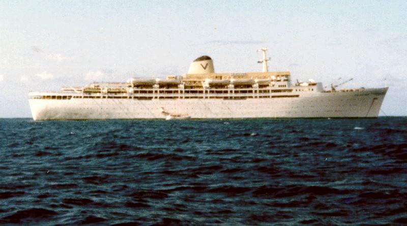 シトマークルージズ (Sitmar Cruises Inc.) 運航。 Built: 1957, IMO: 5267732, MMSI: n/a Gross tonnage: 21,619t, Length: 187.8m, Beams: 23.8m |
