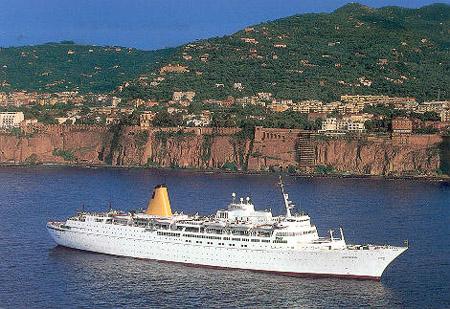 P&O クルージズ (P&O Cruises) 運航。 Built: 1978, IMO: 6512354, MMSI: n/a Gross tonnage: 27,670t, Length: 201.3m, Beams: 26.6m |