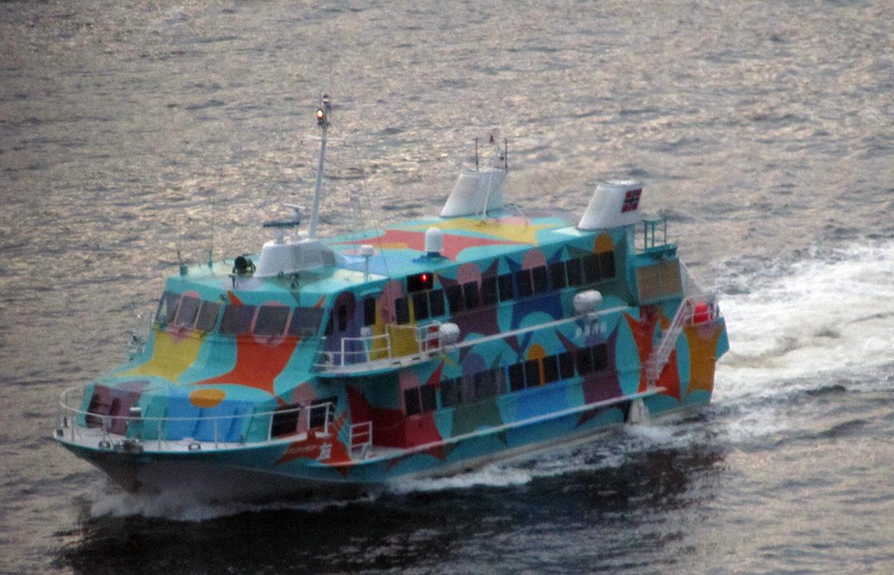 東海汽船株式会社 (Tokai Kisen Co., Ltd.) 運航。 Built: 1989, IMO: 8819160, MMSI: n/a Gross tonnage: 164t, Length: 27.4m, Beams: 8.5m |