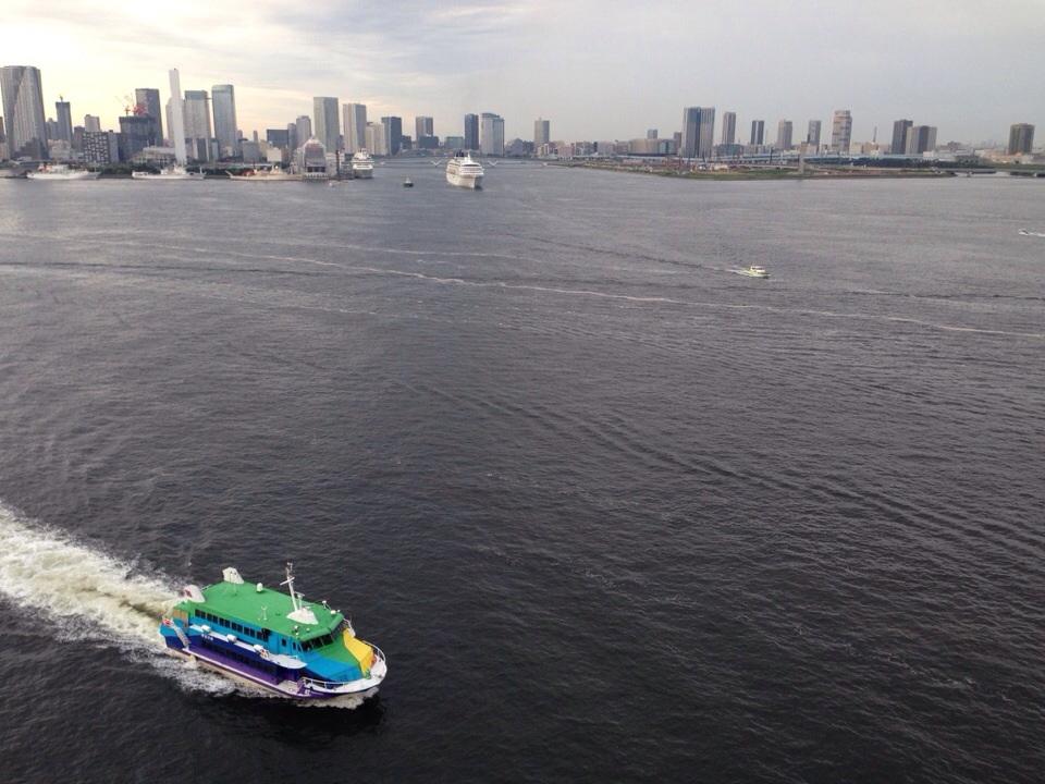 飛鳥 II の出港をみていると虹が出港していきました。 |