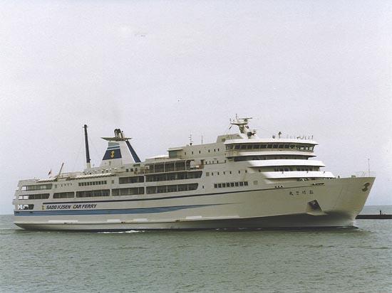 佐渡汽船株式会社 (Sado Kisen Co., Ltd) 運航。 Built: 1993, IMO: 9052616, MMSI: 431000001 Gross tonnage: 5,862t, Length: 134.7m, Beams: 21.0m |