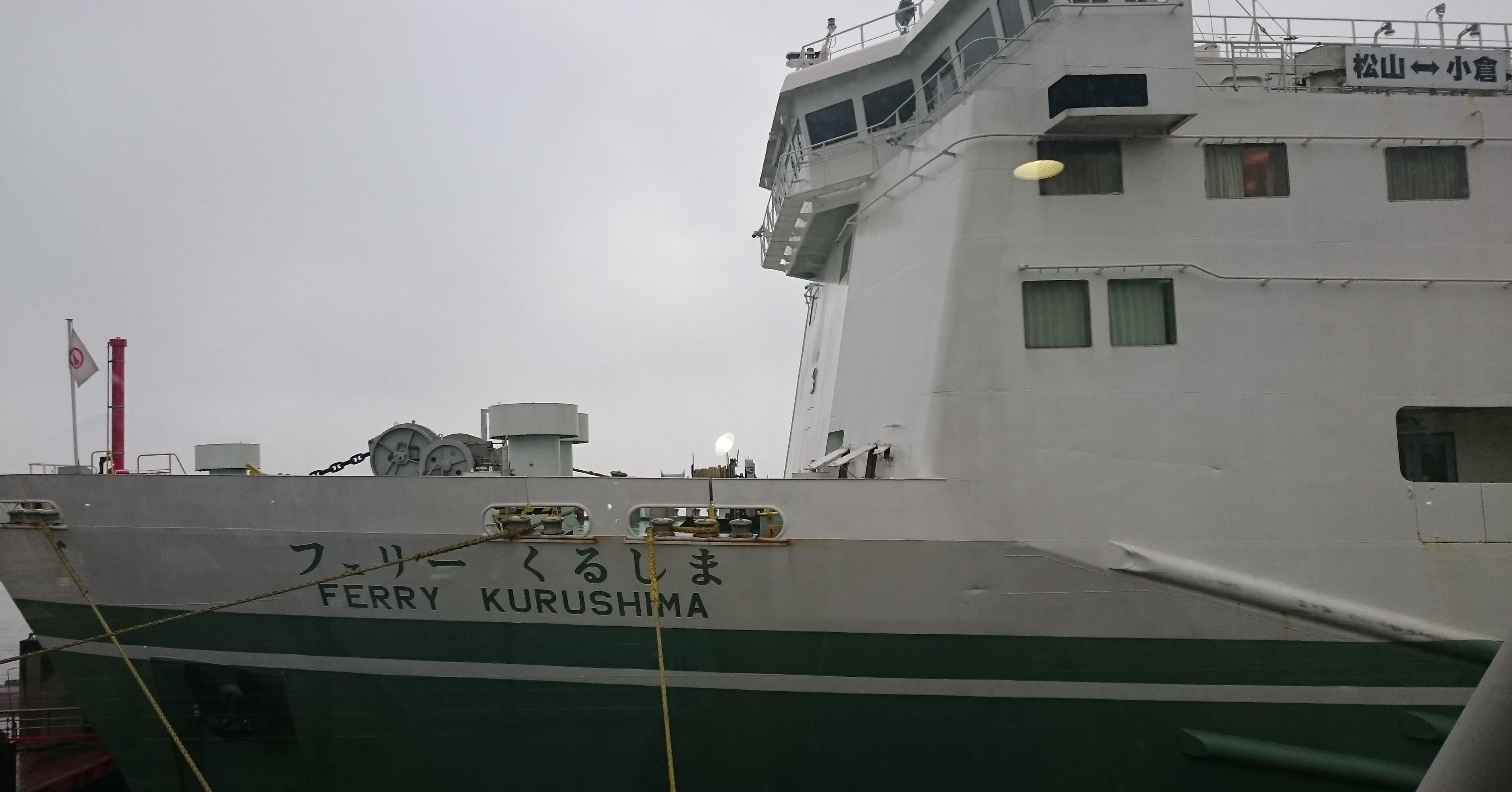 フェリーくるしま 現・松山小倉フェリー株式会社 2015年06月25日(木)21:55発 → 06月26日(金)05:00着 松山観光港 06:30 船内休憩後 [松山↔小倉]行先表示が新しく付け替えられていました。 |