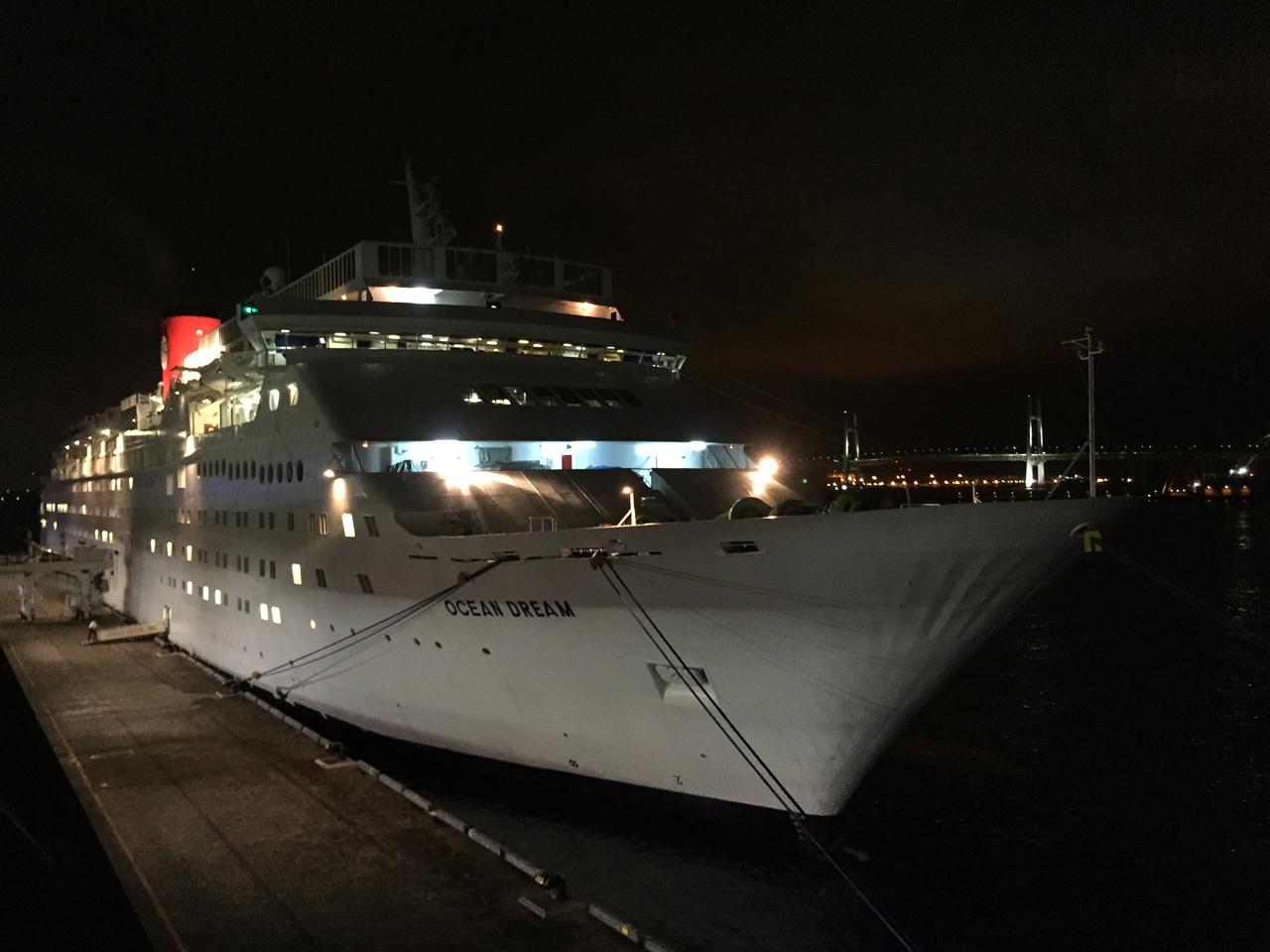 夜の横浜港に地球一周の船旅に就航しているOcean Dreamが停泊していました。 |