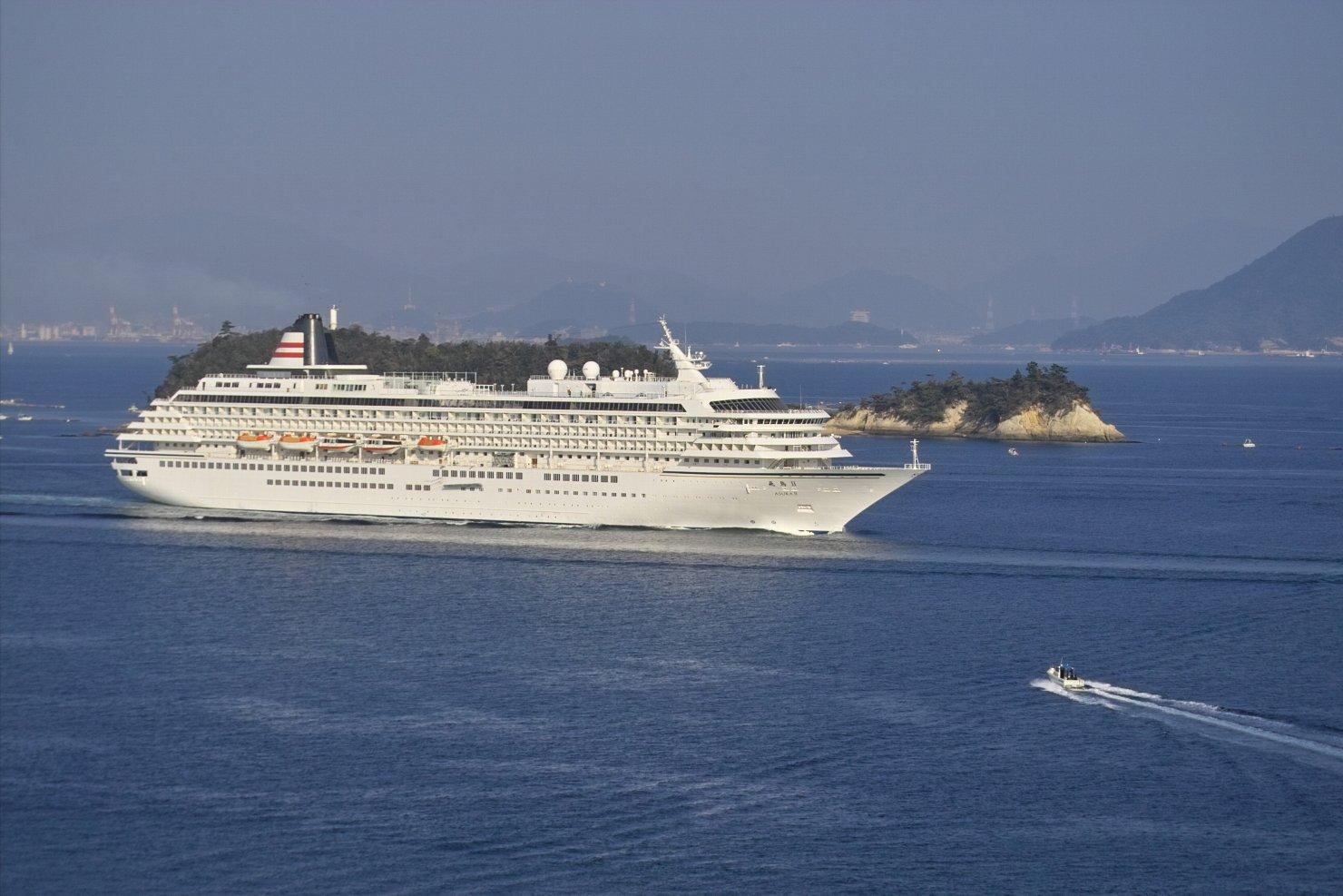 飛鳥Ⅱが広島港に寄港するときには、大抵は撮影に行きますが、実家のある、広島県大崎上島の沖を航行するのを、帰省の際に何度か撮影しています。 姉妹船のクリスタルシンフォニーも、実家の前で撮影しています。 かなり以前には、ロイヤルバイキングスターも、実家の前で撮影しています。 |