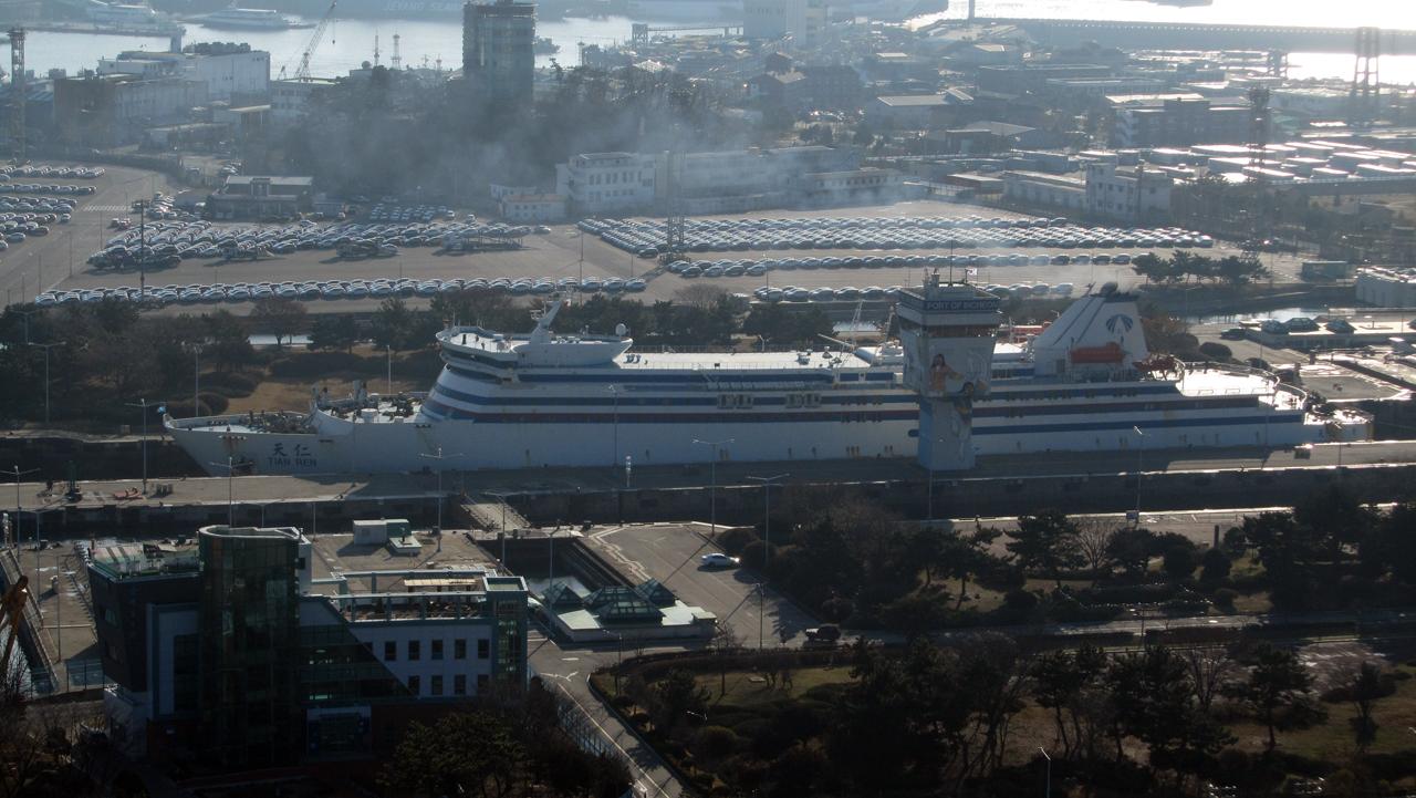 津川国际客货航运有限公司 (Jinchon Ferry Co., Ltd.) 運航。 Built: 1990, IMO: 8902357, MMSI: 357911000 Gross tonnage: 26,463t, Length: 187.0m, Beams: 25.0m |
