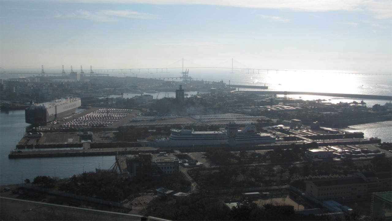 Wolmi Observatoryから見た仁川港南部です。水門付近に「天仁」が写っています。 |
