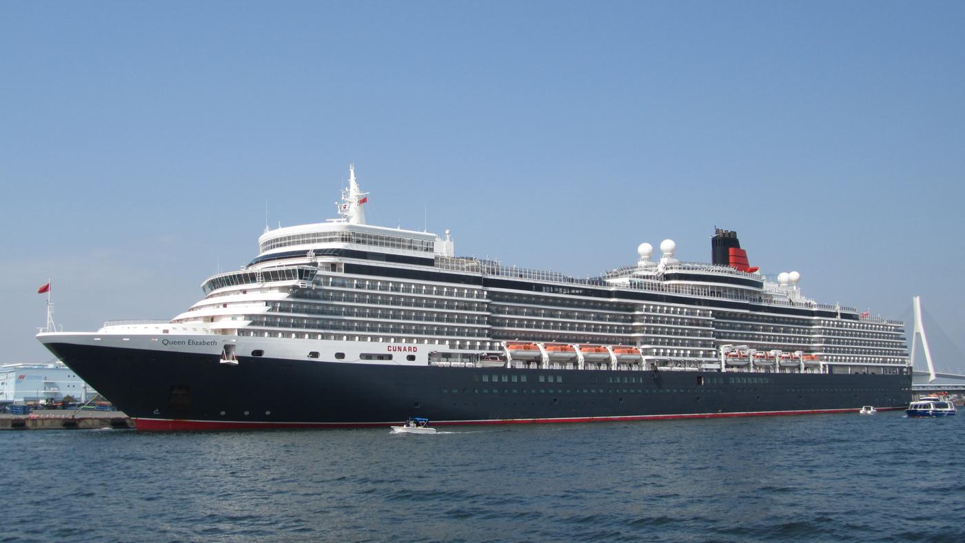キュナードライン (Cunard Line) 運航。 Built: 2010, IMO: 9477438, MMSI: 310625000 Gross tonnage: 92,000t, Length: 293.9m, Beams: 32.3m |