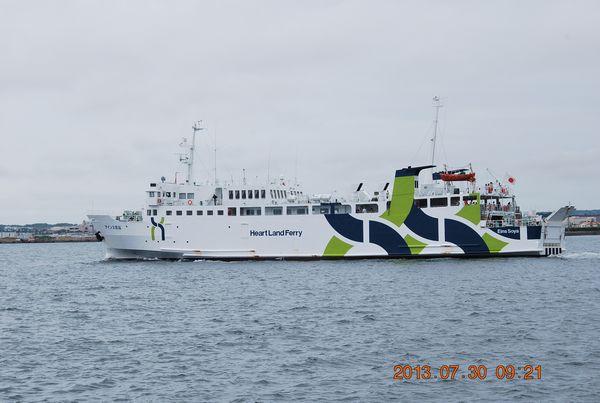 東日本海フェリー株式会社 (Higashi Nihonkai Ferry Co, Ltd.) 運航。 Built: 1997, IMO: 9162722, MMSI: 431800155 Gross tonnage: 2,628t, Length: 76.7m, Beams: 14.5m |