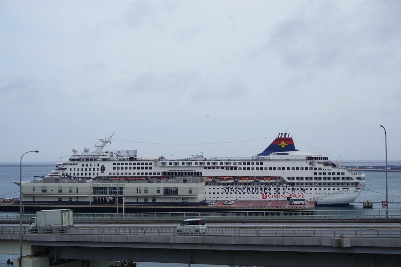 クルーズターミナルに停泊するスーパースターアクエリアスです。台湾からの観光客がたくさん沖縄観光に出かけていきました。 |