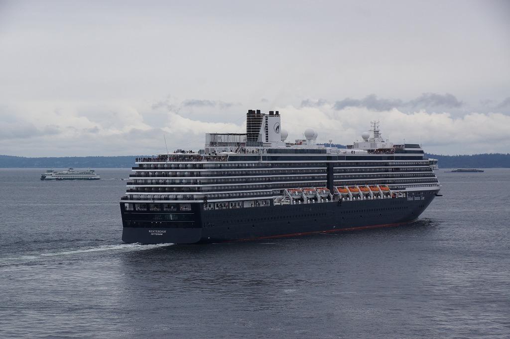 シアトル港ではクルーズ船がほぼ同時刻に出港するので、外を見ていると楽しいですね。