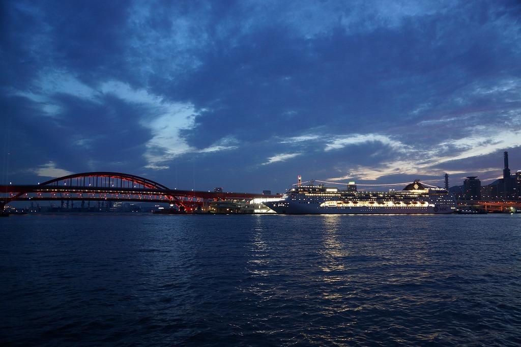 夕暮れ時の客船は宝石のようですね。様々な光が散りばめられて美しいです。クルーズに行きたくなります。投稿ありがとうございます。
