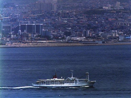 明石海峡の「かめりあ丸」(ドック回航中) |