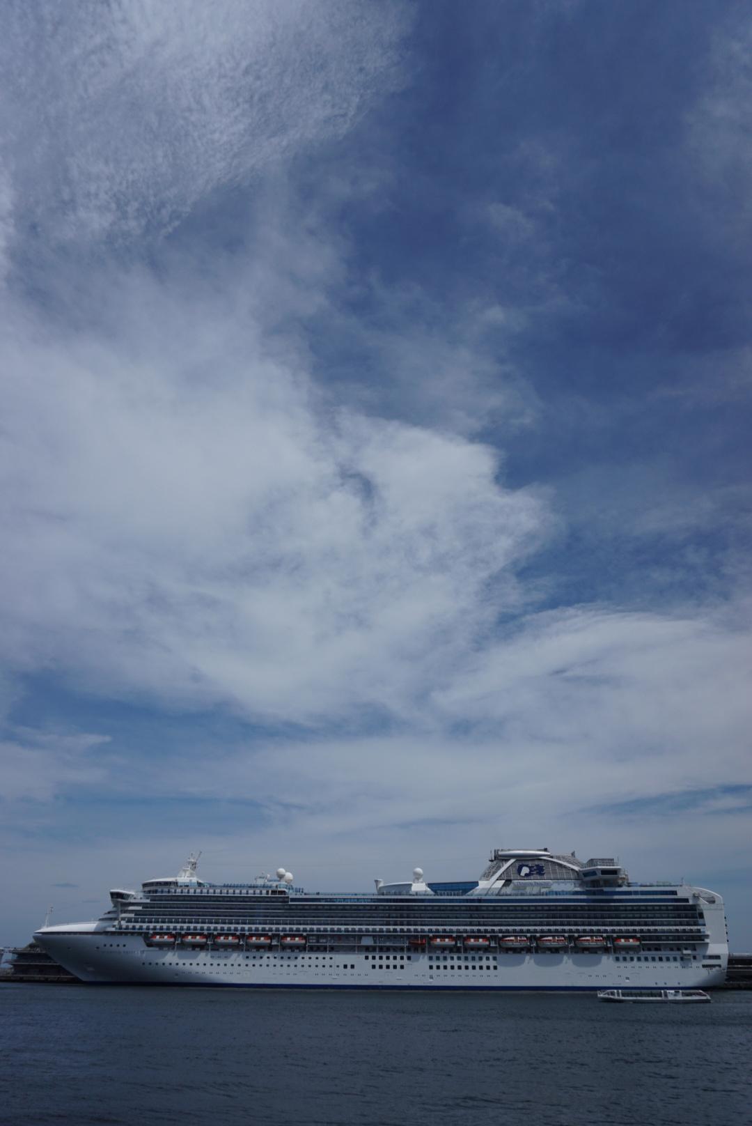 快晴の横浜港に停泊するダイヤモンドプリンセス |
