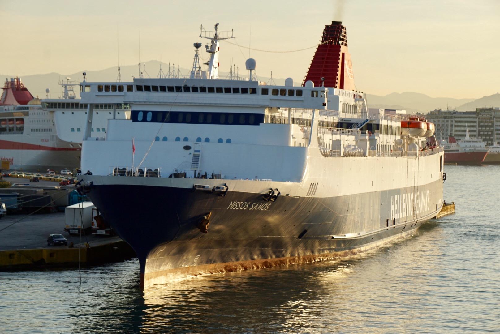 ピレウス港で見かけたニッソスサモスです。ピレウスからギリシャの島々への航路に就航しているようです。 |