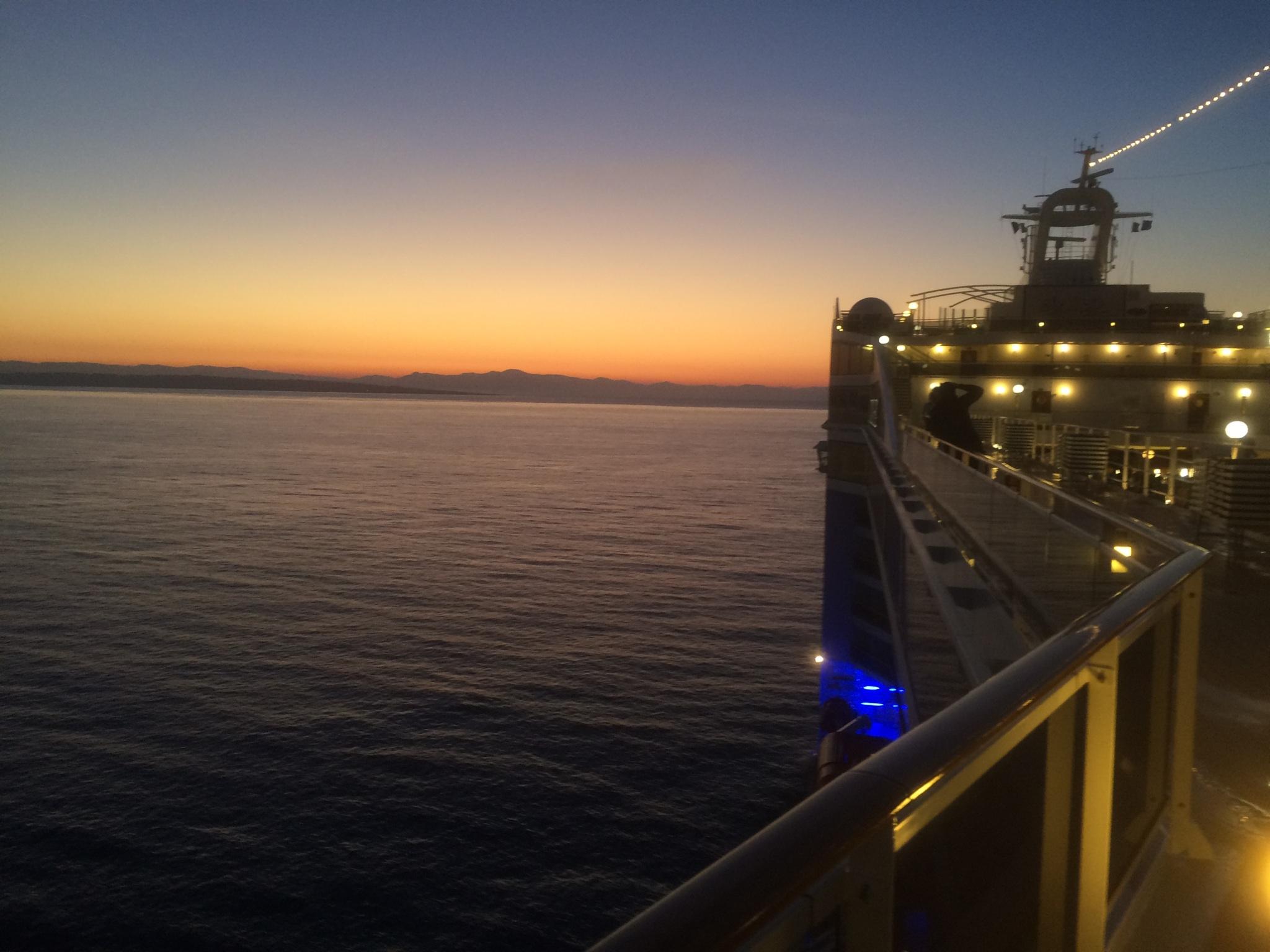 Magnificaからみた夕日ですね。クルーズではどちらに行かれたのでしょうか?ぜひ船内の様子も見てみたいです。よろしければ開運関連掲示板に投稿いただければ嬉しいです。いつも投稿ありがとうございます。