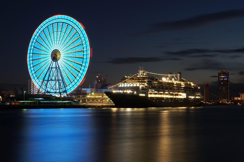 2/12 天保山岸壁でイルミネーションの競演を、30秒の長時間露光で撮ってみました。 |