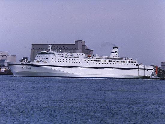太平洋フェリー株式会社 (Taiheiyo Ferry Co., Ltd.) 運航。 Built: 1989, IMO: 8815073, MMSI: 431201130 Gross tonnage: 13,937t, Length: 193.0m, Beams: 27.0m |