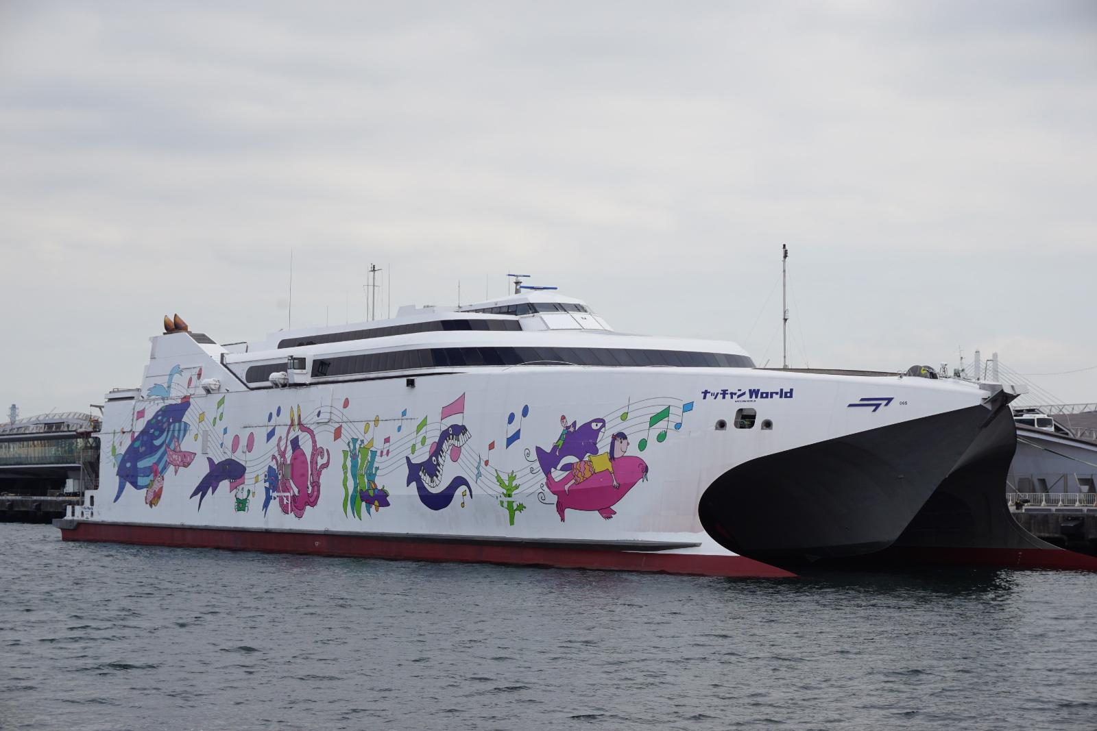 高速マリン・トランスポート株式会社 (High-speed Marine Transport *) 運航。 Built: 2008, IMO: 9383649, MMSI: 431000445 Gross tonnage: 10,712t, Length: 112.0m, Beams: 31.0m |