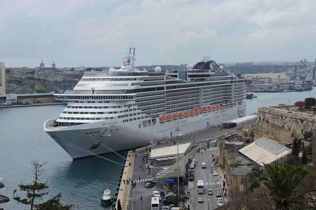 迫力のある写真をありがとうございます。車やバスと比べ、MSCスプレンディアの大きさがよくわかる写真ですね。こうしてみると結構フロントがトップヘビーに見えますね。
