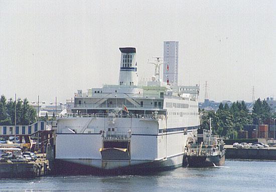 太平洋フェリー株式会社 (Taiheiyo Ferry Co., Ltd.) 運航。 Built: 1989, IMO: 8815073, MMSI: 431201130 Gross tonnage: 13,937t, Length: 193.0m, Beams: 27.0m |