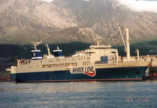 マリックスライン株式会社 (Marix Line Co., Ltd.) 運航。 Built: 1999, IMO: 9209867, MMSI: 431603380 Gross tonnage: 4,945t, Length: 140.0m, Beams: 20.5m |