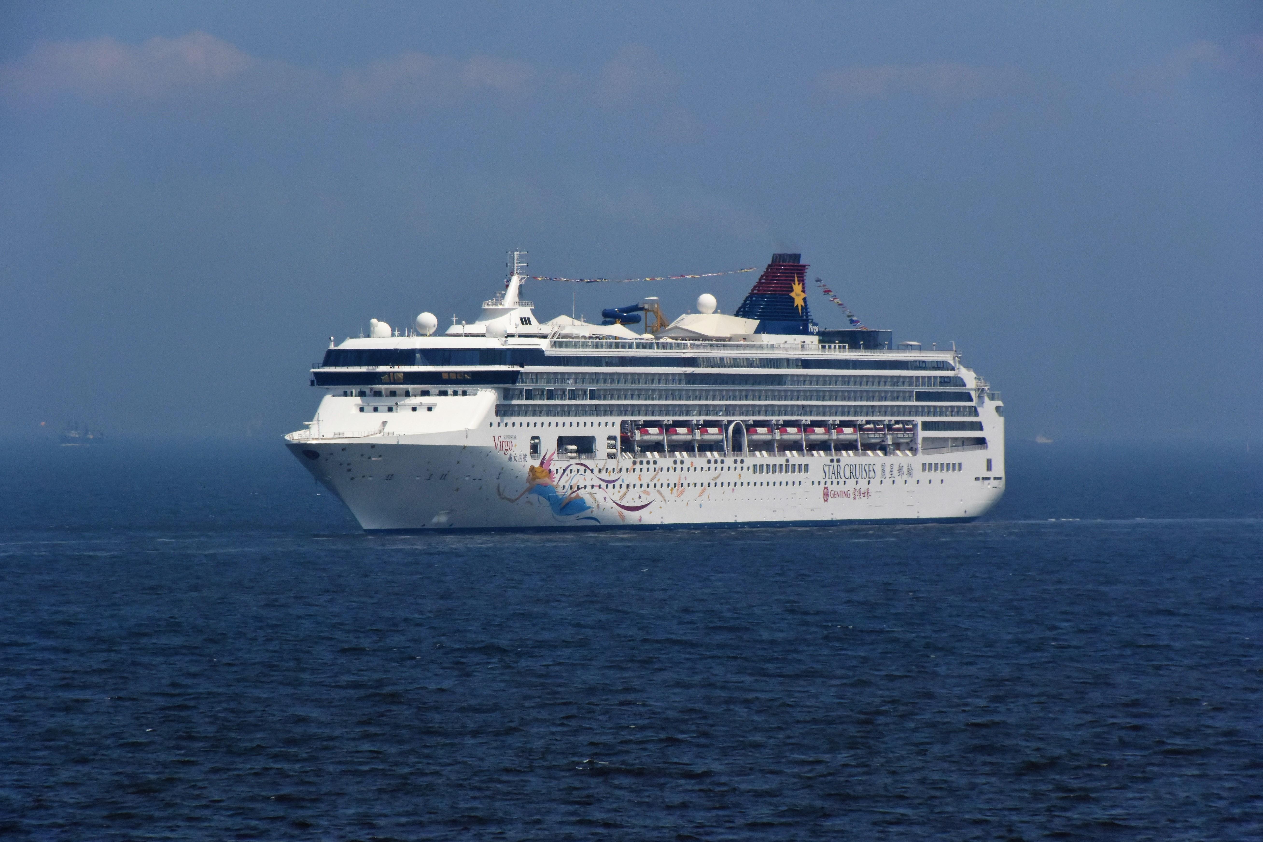 スタークルージズ (Star Cruises Inc.) 運航。 Built: 1999, IMO: 9141077, MMSI: 311000165 Gross tonnage: 76,800t, Length: 268.0m, Beams: 32.0m |