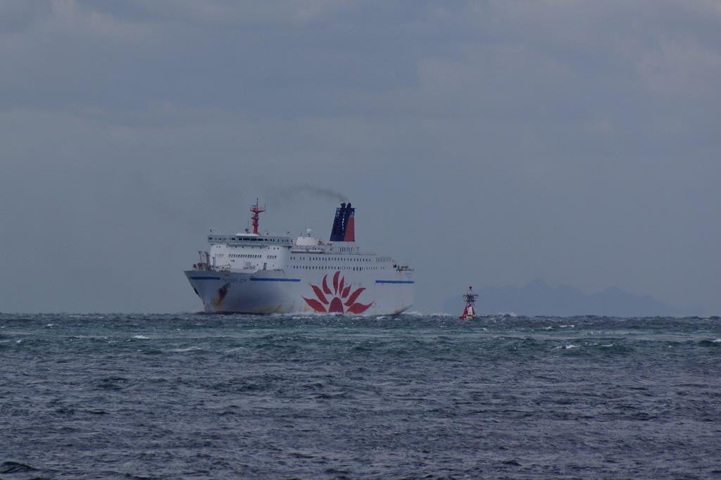 10月23日撮影 「さんふらわあさつま」通常のコースは四国沖の太平洋廻りですが、台風21号の退避先、備後灘から大阪南港へ戻ります |