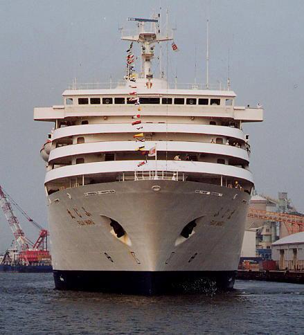 商船三井客船株式会社 (Mitsui O.S.K. Passenger Lines Ltd.) 運航。 Built: 1989, IMO: 8700474, MMSI: 431301000 Gross tonnage: 23,340t, Length: 167.0m, Beams: 24.0m |