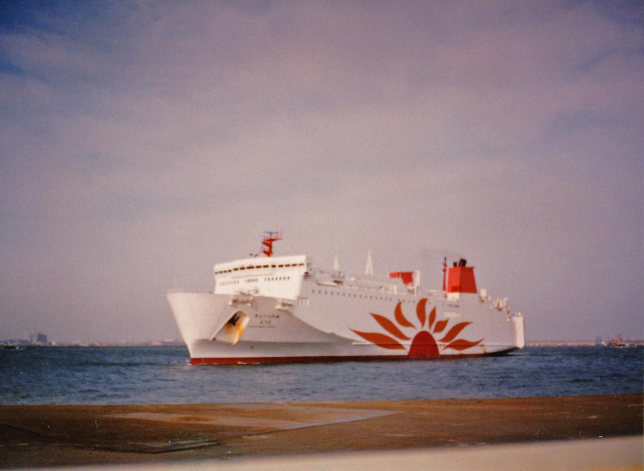 1993年撮影。さんふらわあえりもが東京フェリーターミナルに入港するシーン。 |