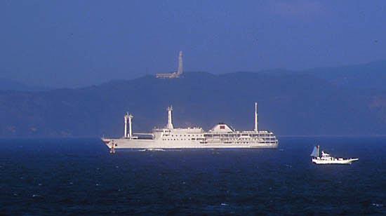 東海汽船株式会社 (Tokai Kisen Co., Ltd.) 運航。 Built: 1992, IMO: 9054080, MMSI: 431100403 Gross tonnage: 5,019t, Length: 121.0m, Beams: 15.0m |