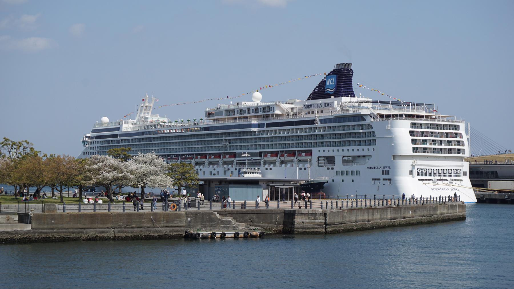 ピア象の鼻からみたノルウェージャンジュウェルです。香港から11日間のクルーズの最終港として横浜港に初入港しました。寄港地はHongokong(3/21), Xiamen (3/22), Shanghai(3/24), Tianjin (3/26-27), Inchon (3/28), Kobe (3/30), Shimizu (3/31), Yokohama(4/1)の行程でした。この後、Asia Cruise 15 dayとして上海までのクルーズに出発予定です。次航はYokohama (4/1), Shimizu (4/2), Kobe (4/3-4), Kagoshima (4/5), Naha(4/7), Ishigaki (4/8), Keelung (4/9), Kaohsiung (4/10), Hong Kong(4/11-12), Xiemen (4/13), Shanghai (4-15-16)の予定です。 |