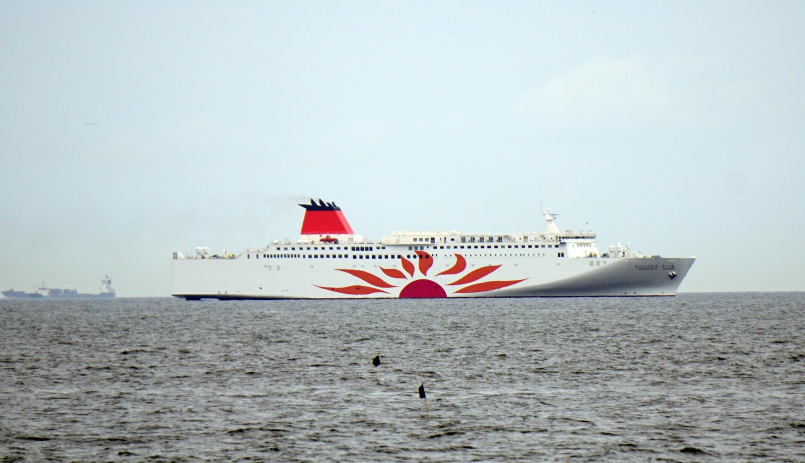 JMU磯子から船主に引き渡され、東京湾を出て大阪へ向かう「さんふらわあさつま」です。 |