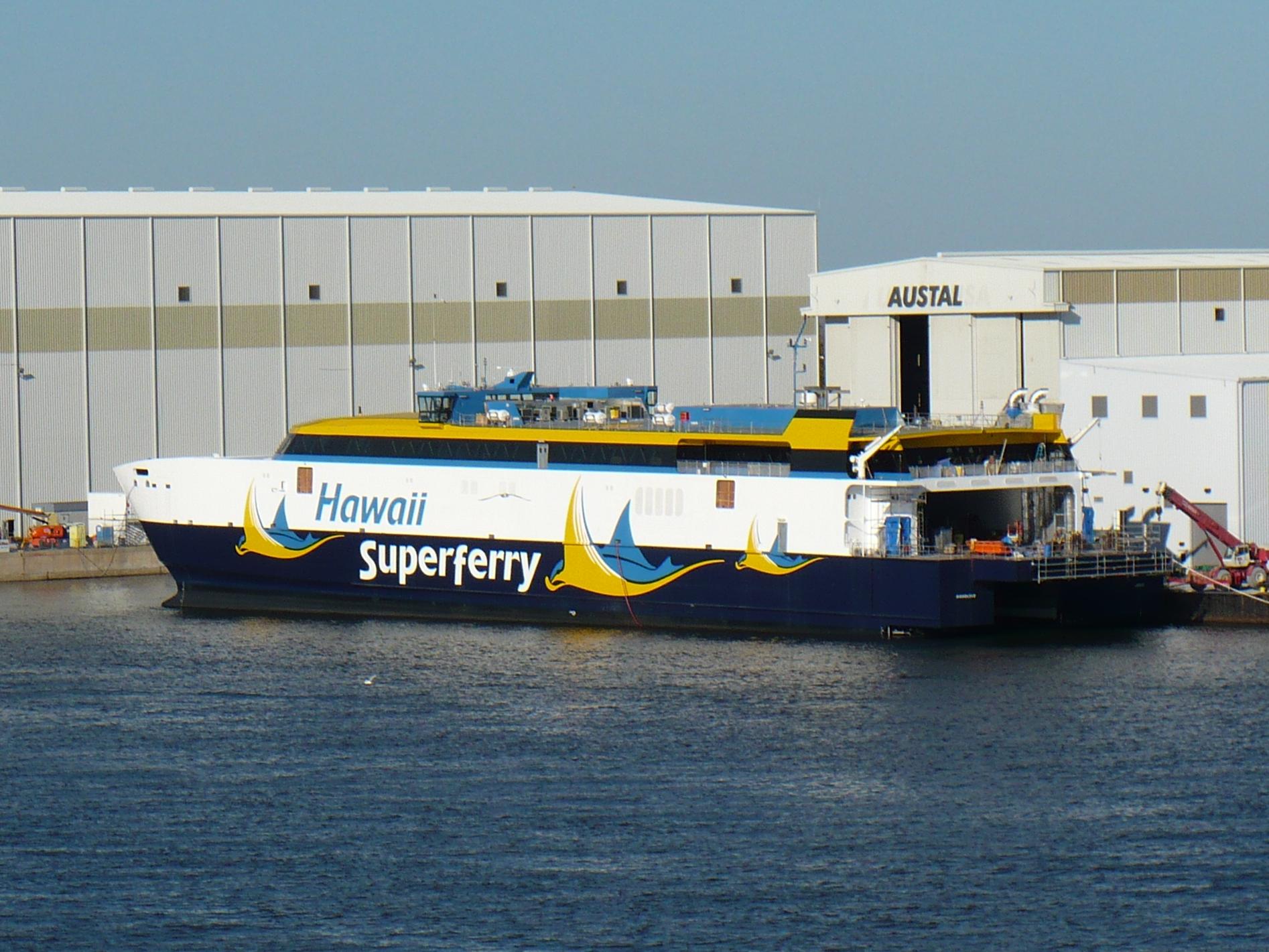 ハワイスーパーフェリーインコーポレーテッド (Hawaii Superferry Inc.) 運航。 Built: 2009, IMO: 9328924, MMSI: 369466000 Gross tonnage: 8,284t, Length: 114.0m, Beams: 24.0m |