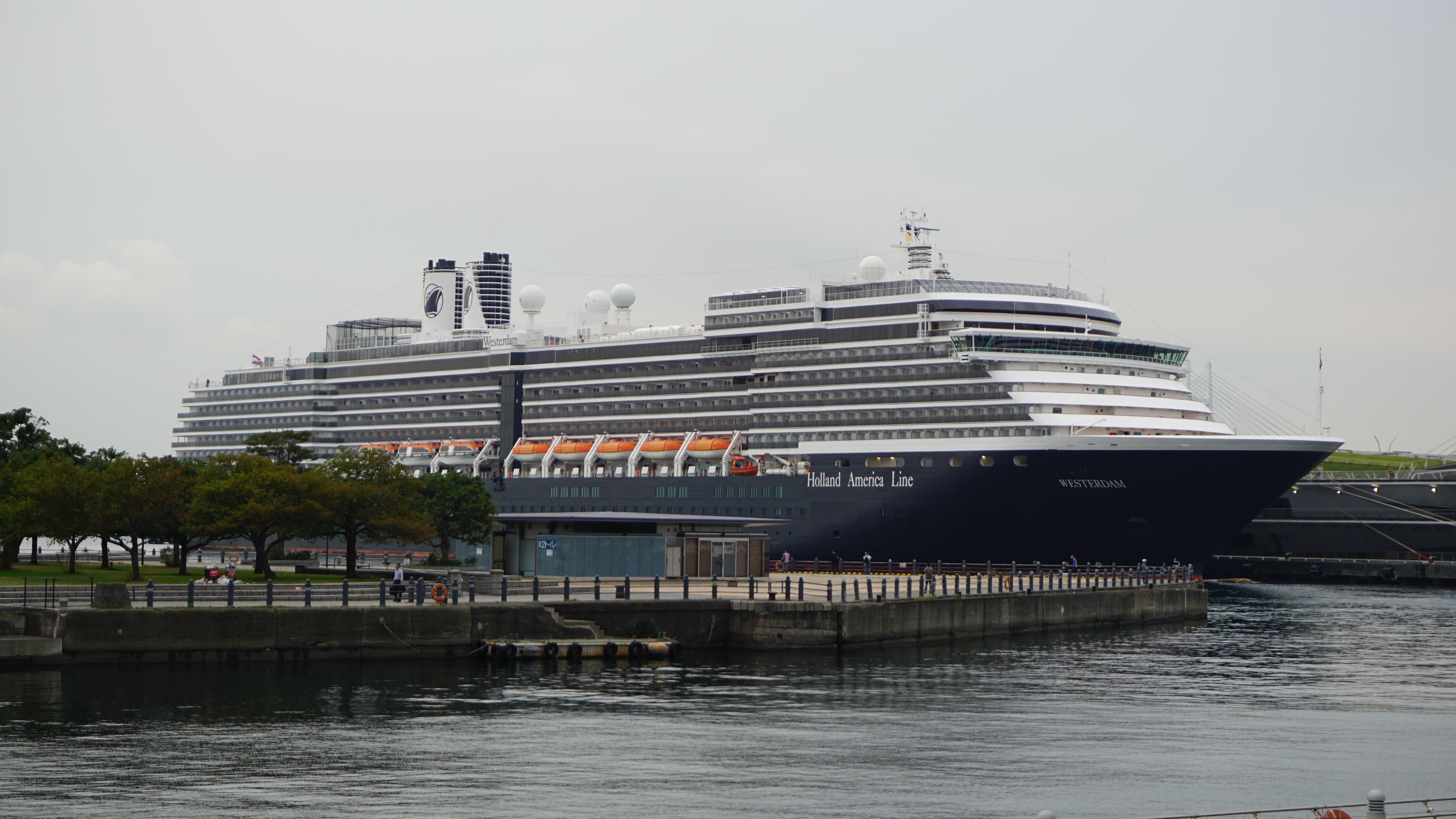 ホランドアメリカライン (Holland America Line) 運航。 Built: 2004, IMO: 9226891, MMSI: 244128000 Gross tonnage: 81,811t, Length: 285.0m, Beams: 32.2m |