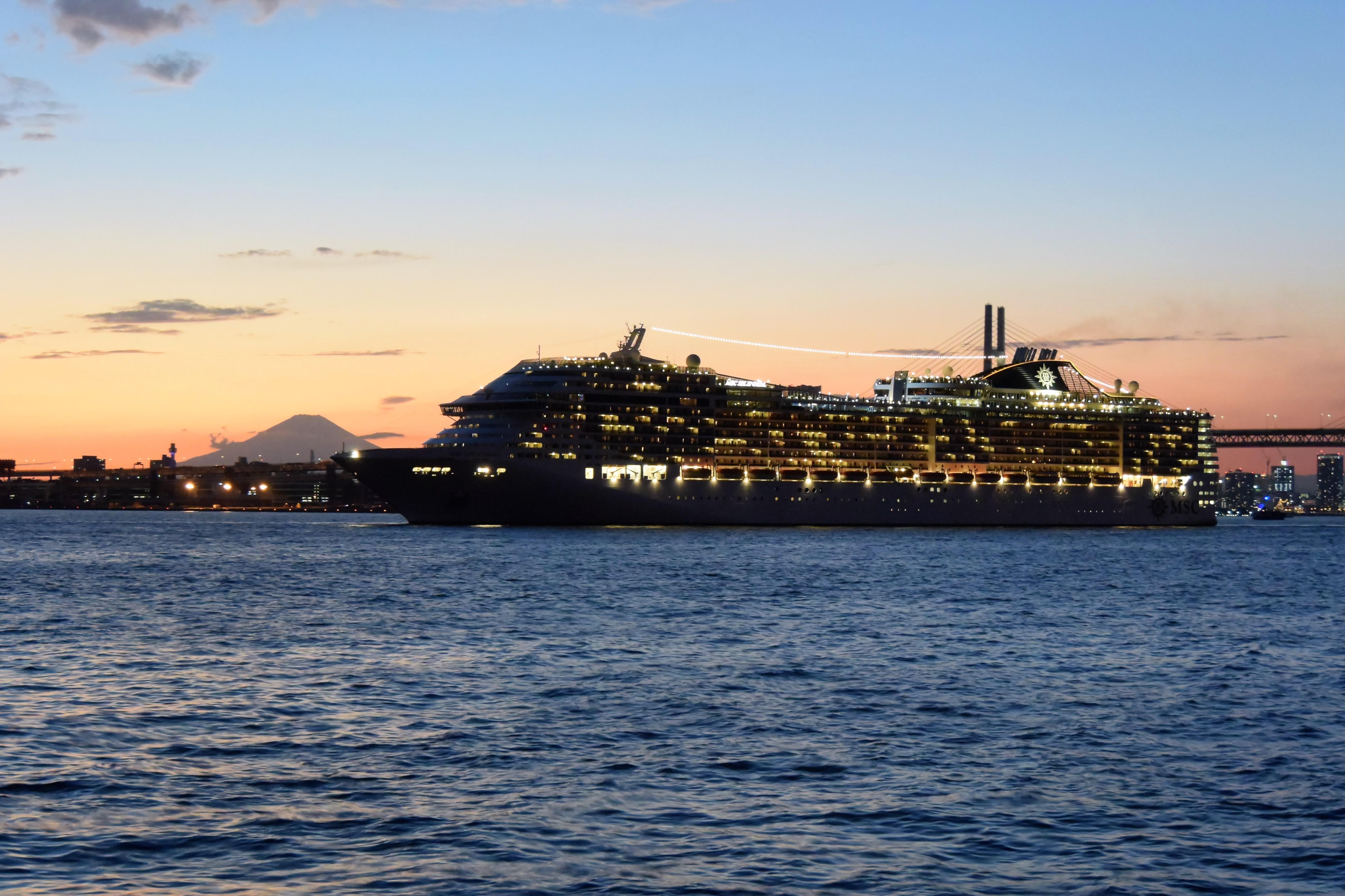 美しい夕景の写真を投稿頂きありがとうございます。夕暮れ時にベイブリッジと富士山が綺麗ですね。