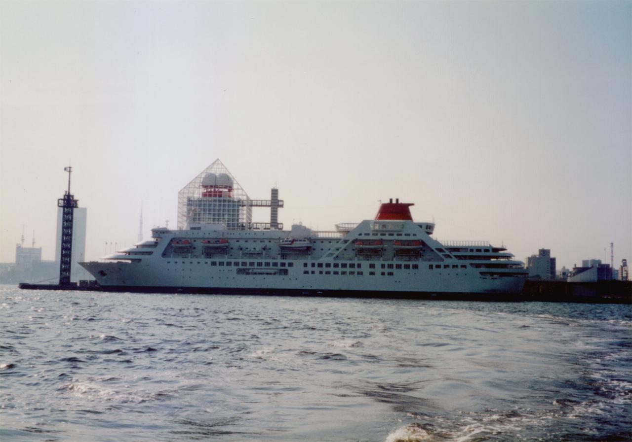 商船三井客船株式会社 (Mitsui O.S.K. Passenger Lines Ltd.) 運航。 Built: 1989, IMO: 8700474, MMSI: 431301000 Gross tonnage: 23,340t, Length: 167.0m, Beams: 24.0m |